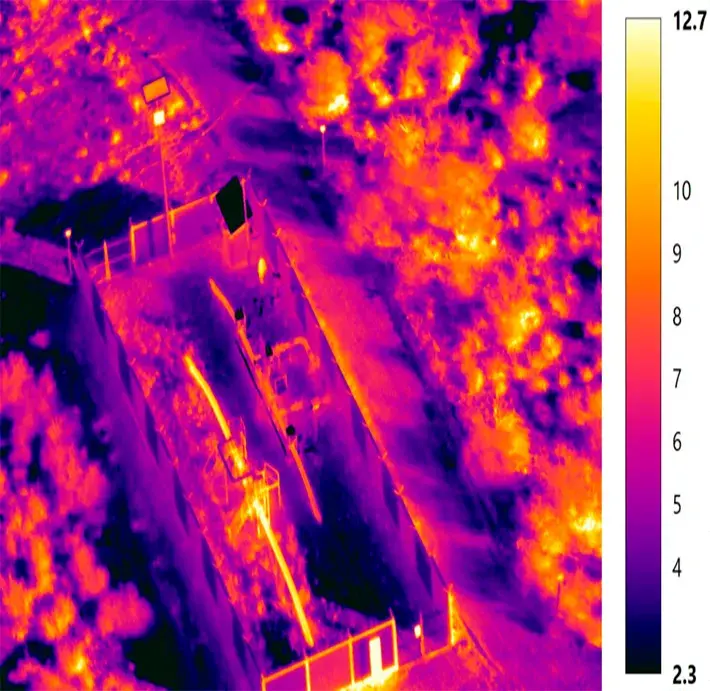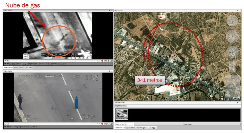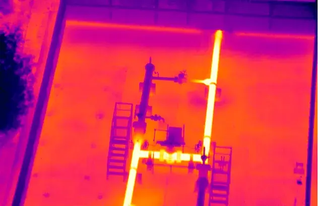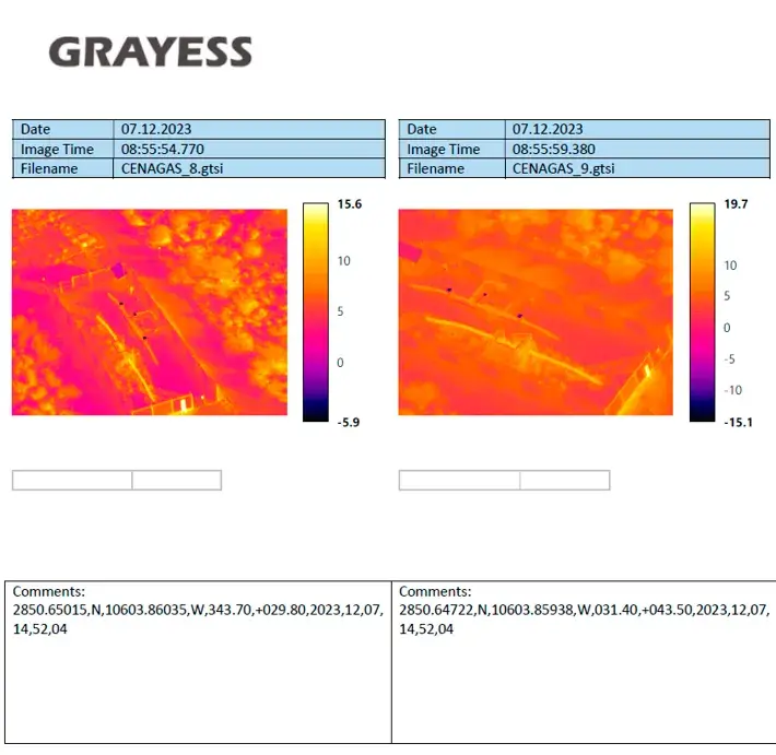 Esta cámara nos permite detectar en tiempo real sobre las instalaciones cuales tienen paso de gas y cuales no. Así mismo, nos genera fotografías de puntos de interés las cuales se pueden convertir en un reporte en PDF con los detalles de temperatura y coordenadas de la foto o video capturado.